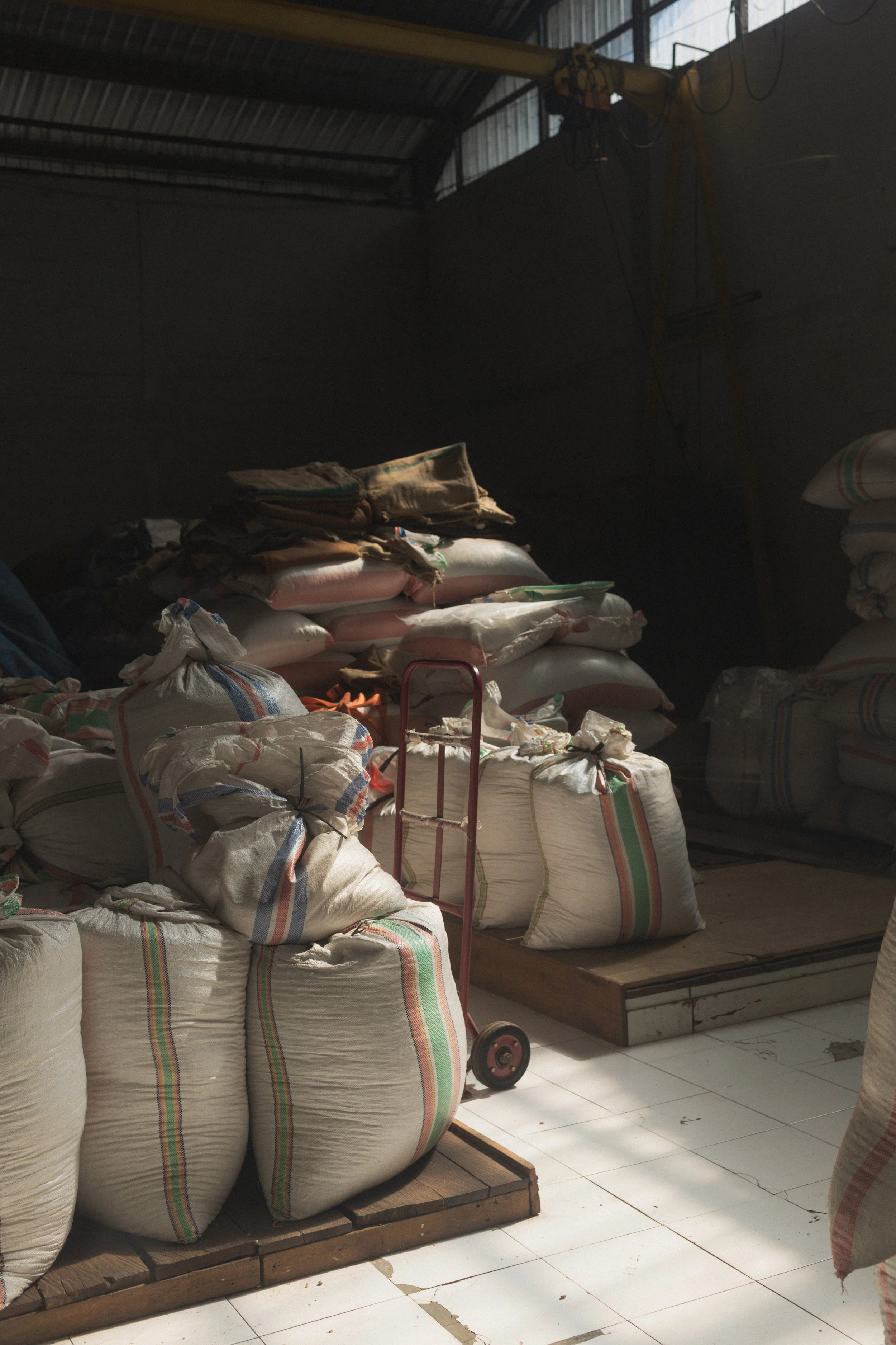Our large storage area maintains optimal conditions for preserving the freshness and quality of our coffee beans. It’s here that we keep a diverse selection of single-origin and blended beans, ready for the roasting process.
